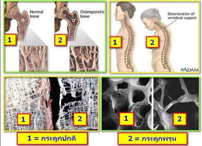 2.) เมื่อเข้าสู่วัยทองระดับฮอร์โมนเอสโตรเจนลดลงอย่างรวดเร็วทำให้เนื้อกระดูกลดลงอย่างรวดเร็ว