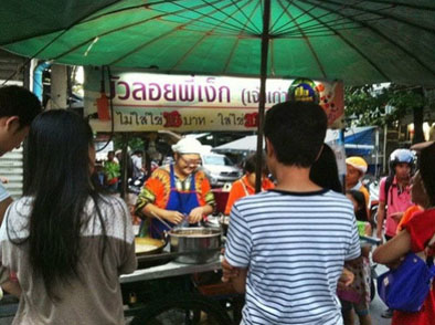 สิ่งที่ผู้เขียนคิดถึงที่สุดเมื่อจากเมืองไทยมาก็คือของกิน เมืองไทยนั้นอุดมสมบูรณ์ไปด้วยของรับประทานนานาชนิด ล้วนแล้วแต่อร่อยหาทานไม่ได้ในแอลเอทั้งสิ้น ความสนุกนั้นอยู่ที่การดั้นด้นไปหาร้านที่เขาลือกันนักกันหนาว่าอร่อยล้ำ ถึงแม้ไปแล้วจะต้องรอคิวนานก็ยังคุ้มค่าความอร่อย จำได้ว่าเพื่อนสนิทคนหนึ่งเคยมาเล่าว่าให้ไปลองชิมข้าวราดกระเพราวงเวียนใหญ่ ผู้เขียนเมื่อได้ฟังแล้วก็บอกเพื่อนว่า เสียสติไปแล้วหรือ กับอีแค่ข้าวราดกระเพรามันเรื่องอะไรจะต้องดั้นด้นไปถึงวงเวียนใหญ่ เพื่อนก็ยืนยันว่าบอกให้ลองก็ลองเถิดน่า ผู้เขียนยอมเชื่อเพื่อนไปจนถึงที่ ไปถึงแล้วก็ต้องงงเพราะมีคนรออยู่กว่า ๒๐ กว่าคน คนผัดก็ผัดเอาจริงเอาจัง ถึงแม้จะเป็นร้านขายอาหารตามสั่ง แต่ใครๆก็สั่งแต่กระเพราไก่ไข่ดาว เสียเวลาไปเกือบชั่วโมงได้กระเพราไก่ราดข้าวมาสองห่อ กลับมาลองชิมที่บ้าน ถึงได้ถึงบางอ้อว่า มันทั้งหอมทั้งกลมกล่อม อร่อยแบบลืมอิ่ม จนต้องอุทานว่าน่าจะซื้อมาหลายๆห่อ ก็คนไทยน่ะ ทานอะไรก็ทานกระจิ๊ดริด ไม่เหมือนคนอเมริกัน มาจานเดียวอิ่ม ของคนไทยอย่างน้อยๆต้องเบิ้ลสอง ถึงจะรู้สึก