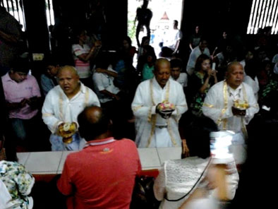 โดยพระเต้ย หรือนายภาณุภณ จักราบาตร อายุ 48 ปี หนึ่งใน 12 พระใหม่กล่าวว่า ตนเป็นศิษย์ของพระรูปหนึ่งในกรุงเทพฯ ได้ทักว่าดวงจะถึงฆาต และได้แนะนำให้มาบวชในวันคล้ายวันเกิดของอาจารย์ พวกตนจึงรวมตัวกันมาบวชที่วัดแห่งนี้เพื่อสร้างกุศลผลบุญให้มากขึ้น”