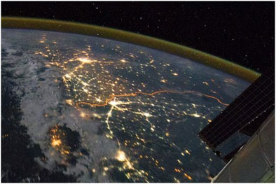 นอกจากเรื่องธรรมชาติแล้ว ภาพจากอวกาศที่ส่องลงมายังโลก ยังสะท้อนอะไรได้อีกหลายด้าน โดยเฉพาะเรื่องของความเจริญที่ไม่เท่าเทียมกันของแต่ละประเทศ ที่สามารถมองเห็นจากพื้นดินสู่อวกาศนับร้อยๆ ไมล์