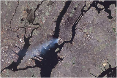 เหตุการณ์เขย่าขวัญคนทั้งโลกที่เกิดจากน้ำมือมนุษย์อย่างวินาศกรรม 11 กันยายน ณ เวิร์ลเทรดเซ็นเตอร์ ไม่ว่าจะผ่านไปกี่ปีก็ยังเป็นกล่าวขวัญถึงความสูญเสียที่เกิดขึ้น นอกจากภาพเหตุการณ์ที่ได้จากอาคารโดยรอบตึกเวิร์ลเทรดเซ็นเตอร์แล้ว ไม่น่าเชื่อว่าจะสามารถบันทึกเหตุการณ์ประวัติศาสตร์นี้ได้จากบนอวกาศ