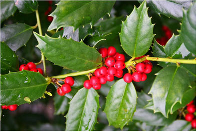 ต้น ฮอลลี ซึ่งมีใบเป็นหนามแหลมและเขียวชอุ่มตลอดปี รวมทั้งมีผลเล็กๆ เป็นสีแดงสดกลายมาเป็นสัญลักษณ์ของวันคริสต์มาส สีเขียวและแดงมีต้นกำเนิดมาจากเหตุผลทางคริสต์ศาสนา สีเขียวเป็นสัญลักษณ์ของชีวิตและความไม่ตาย อันเกี่ยวเนื่องกับเรื่องราวของพระเยซูซึ่งฟื้นคืนชีวิตและกลับคืนสู่สวรรค์ ส่วนสีแดงหมายถึงโลหิตแห่งความเสียสละของพระองค์ที่หยาดหยดลงบนผืนดิน ใบสีเขียวที่เป็นหนามแหลมของต้นฮอลลียังเป็นรูปลักษณ์ที่ทำให้ระลึกถึงมงกุฎ หนามแหลมที่ทหารโรมันนำมาสวมบนศีรษะให้พระเยซู เพื่อล้อเลียนท่านว่าเป็นมงกุฎของ "ราชาแห่งชาวยิว"