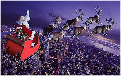 ตอน ที่นักบุญนิโคลัส หรือซานตา คลอส ยังมีชีวิต ท่านไม่เคยเดินทางไปไหนๆ โดยเลื่อนหิมะที่มีกวางเรนเดียร์ลากให้ แต่ภาพของชายแก่แก้มยุ้ยพุงโตในชุดแดงที่เราคุ้นเคยเกิดขึ้นจากจินตนาการของ ชายคนหนึ่ง ชื่อ ดร.เคลเมนต์ คลาร์ก มัวร์ (1779-1863) ที่ต้องการทำวันคริสต์มาสให้เป็นวันที่สนุกสนานและน่าจดจำสำหรับลูกๆ โดยเขียนบทกวีชื่อว่า "การเยี่ยมเยียนของนักบุญนิโคลัส" เพื่ออ่านให้ลูกสาวสองคนฟังหน้าเตาผิง โดยจับเอาลักษณะใจดีมีเมตตาของนักบุญนิโคลัสตามตำนาน มาจินตนาการเป็นภาพซานตา คลอส ผู้ใจดี ในเสื้อผ้าขนสัตว์ แบกถุงของเล่นบนบ่ามาฝากเด็กๆ เป็นของขวัญ โดยปีนลงมาตรงปล่องไฟในคืนคริสต์มาสอีฟ