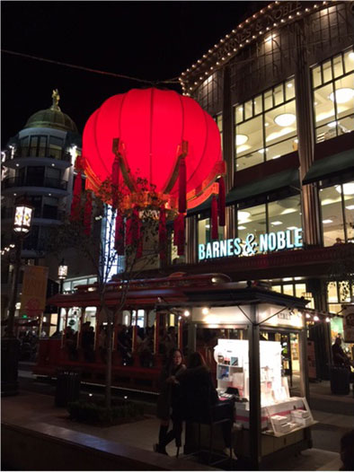 เมืองเกลนเดล อีกฟากหนึ่งก็เป็นรูปโคมแดงใหญ่มโหฬารแขวนตระหง่านต้อนรับเทศกาลตรุษจีน ห้างแห่งนี้เดิมทีเป็นฝรั่งจ๋า และเป็นห้างไฮโซ เพราะตกแต่งหรูหรา แต่คนเดินไม่ค่อยจะไฮโซเหมือนสถานที่ เพราะแถวเกลนเดลนี้ มีแต่ชาวอาเมเนี่ยนและคนฟิลิปปินส์ อย่างไรก็ตามห้างนี้ก็เห็นความสำคัญของกลุ่มลูกค้าเอเชี่ยนจึงได้ตกแต่งเฉลิมฉลองตรุษจีนไปกับเขาด้วย