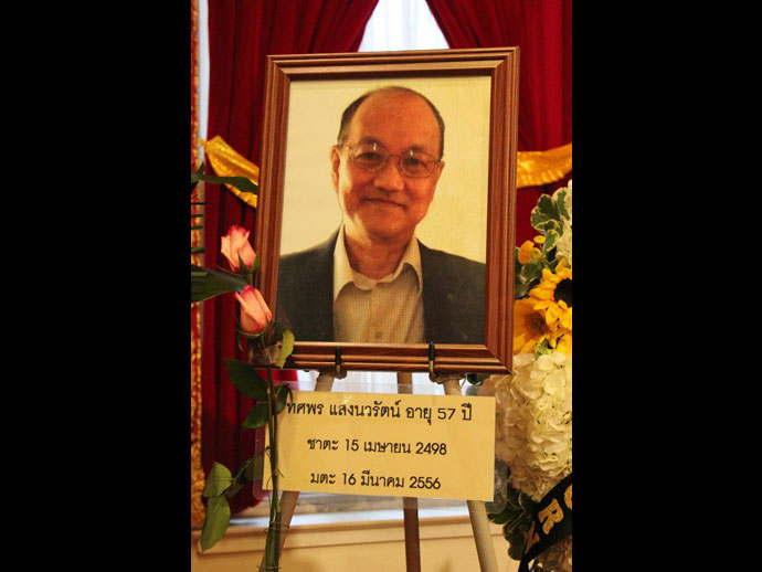 ผมได้ไปร่วมงานสวดพระอภิธรรมคุณทศพรที่วัดมงคลรัตนารามตลอดทั้ง 3 คืน แต่ละคืนมาคนมาร่วมงานอย่างล้นหลาม ทุกคนได้แสดงออกซึ่งความรักใคร่คุณทศพรเพราะมาปลอบขวัญให้กำลังใจครอบครัวของเขา ด้วยคุณความดีของเขาสมกับคำที่ว่า “อยู่ให้เขารัก จากให้เขาคิดถึง” และวันนี้ (March 21,2013) ผมยังไปร่วมงานฌาปนกิจคุณทศพรที่ Sunset View Cemetery, El Cerrito บุตรภรรยา ญาติพี่น้อง และมิตรสหายได้ช่วยกันบำเพ็ญกุศลเป็นวารสุดท้าย ทำหน้าที่ส่ง “เทพบุตร” ขึ้นสวรรค์กันอย่างเรียบร้อย งดงาม สมบูรณ์ และสมเกียรติสมฐานะ