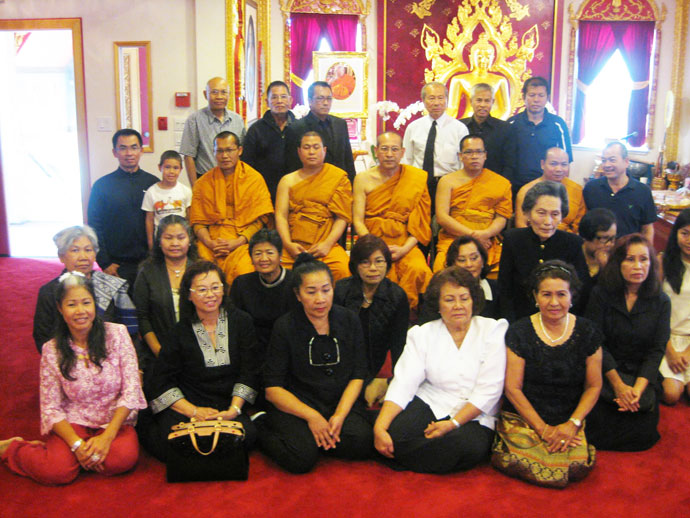 สังฆัง สะระณัง คัจฉามิ (ทุติยัมปิ แม้ครั้งที่ 2 ตติยัมปิ แม้ครั้งที่ 3) และสมาทานศีล 8 กับพระโดยว่าตาม