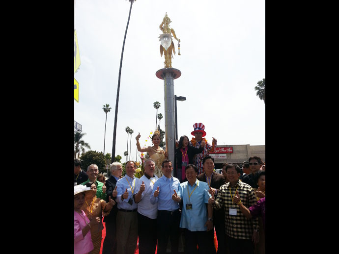 สุรางคณา จำปางาม ตามมาเป็นองครักษ์พิทักษ์ลูกสาวด้วย.........* มิสไทยนิวเยียร์ สงกรานต์ เฟสติวัล ที่ถนนฮอลลีวูด ปีนี้สวยหยดย้อย หยาดเยิ้ม เทพีสงกรานต์ของวัดไทย ปีนี้ก็ไม่ได้ด้อยน้อยหน้ากว่ากัน มีสาวงามสมัครเข้าประกวดหลายคน ส่วนวันรุ่งขึ้นเป็นวันอาทิตย์ ที่วัดไทยลอสแองเจลิสแห่งนี้ ก็ยังมีพิธีแห่งนางสงกรานต์ อันเป็นประเพณีโบร่ำโบราณ ที่วัดไทยแห่งนี้ยึดมั่นปฏิบัติ ไม่ให้ประเพณีอันงดงามชิ้นนี้หล่นหายไป.........* คืนวันเสาร์ออกจากวัดไทยเตรียมตัวเตรียมใจไปฉลองสงกรานต์ด้วยการเต้นรำทำเพลง และร้องเพลงตามถนัด กับงานสานสายใยน้ำใจไทยสู่แผ่นดินแม่ ครั้งที่ 4 ที่ Arcadia Community Center ตั้งแต่เวลา 18.00 น. – 24.00 น.