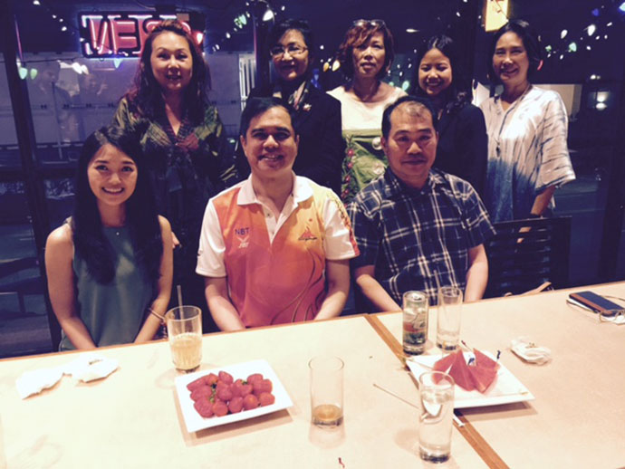 สุนทรี โรจนพลาเสถียร ........* เมื่อเย็นวันเสาร์ที่ 19 กันยายนที่ผ่านมา คณะกรรมการจัดงานทอดผ้าพระกฐินพระราชทาน และงานลอยกระทงวัดไทยแอลเอ. มีมติให้เพิ่มงานขันโตกดินเนอร์เสริมบรรยากาศงานลอยกระทงโดยให้จัดในวันที่ 7 พฤศจิกายน2558 เวลา 17.30-20.30 น. หลังการประกวดนางนพมาศ และพิธีลอยกระทงเสร็จแล้ว โดยมอบหมายให้