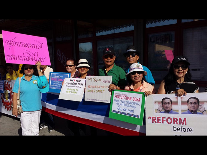 พลเอกประยุทธ์ จันทร์โอชา ที่ได้เดินทางมาร่วมประชุมสมัชชาใหญ่ สหประชาชาติ สมัยสามัญครั้งที่ 70 ที่นิวยอร์ก ได้มีคนไทยจำนวนมากมายมาให้การต้อนรับอย่างอบอุ่น และคนไทยจากรัฐอื่นๆก็ได้แสดงออกด้วยการรวมกลุ่มกันประกาศให้คนรู้ว่า