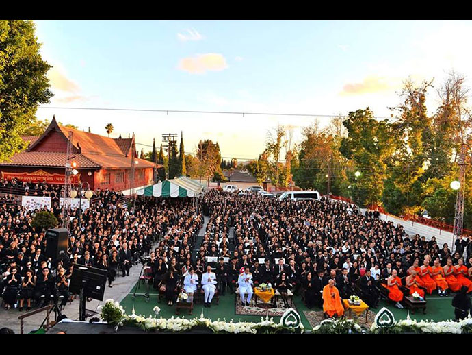 พระปรมินทร์มหาภูมิพลอดุลยเดช ก็แพร่ไปทั่วโลกในวินาทีที่สำนักพระราชวังประกาศแถลงการณ์ออกมา สร้างความโศกเศร้าและอาลัยแด่ปวงชนชาวไทยทั่วหน้า มีพิธีทางศาสนาตามวัดไทยทุกแห่งในอเมริกา และมีการรวมตัวถวายความจงรักภักดีและแสดงความอาลัยต่อพระองค์ท่าน........* ที่ลอสแอนเจลิส. เมื่อคืนวันที่ 15 ตุลาคม 2559 ชาวไทยในแอลเอ.ส่งข่าวถึงกันเมื่อตอน 5 ทุ่มครึ่ง นัดมารวมตัวกันแสดงความอาลัยต่อ "พ่อหลวง" ที่หน้าไทยแลนด์พลาซ่าเวลาเที่ยงคืน มีหนุ่มสาวประมาณ 80 คน มาจุดเทียนและร้องเพลงสรรเสริญพระบารมีกระหึ่มทั่วไทยทาวน์ ..........* วันที่ 20 ตุลาคม 2559 ที่ทำเนียบกงสุลใหญ่ มีพิธีแสดงความอาลัยต่อ