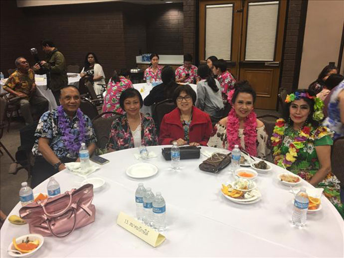 ฮาวายไนท์ เมื่อวันที่ 7 เมษายน 2018 ณ เมืองอาร์เคเดีย มีวัตถุประสงค์เพื่อสนุกสนาน หาเงินสมทบทุนก่อสร้างอาคารปฏิบัติธรรมและอาคารอเนกประสงค์ เพื่อชุมชนไทย ณ วัดไทยแอลเอ. งานได้รับความสำเร็จด้วยดี มีผู้เข้าร่วมงานประมาณ 200 คนมีรายได้ทั้งหมด $ 7,869 มีรายจ่ายทั้งสิ้น $ 1,600 คงเหลือเป็นรายได้สุทธิ $ 6,269 เพื่อส่งมอบให้แก่วัดไทยฯ ต่อไป……..*