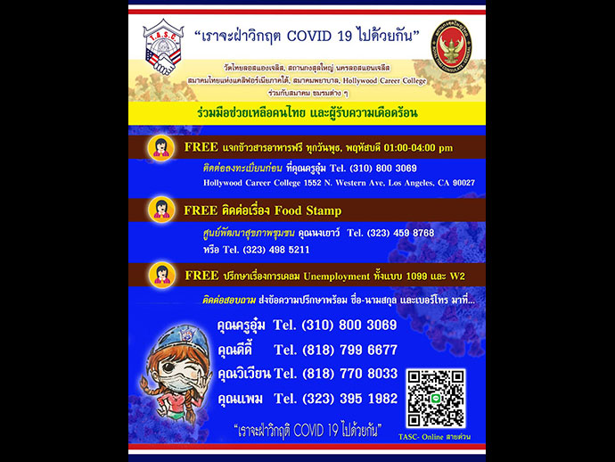 ลอสแอนเจลิสเคาน์ตี้ สามารถนัดหมายเพื่อตรวจการติดเชื้อไวรัสโควิด-19 ได้ฟรี โดยไม่จำเป็นว่าต้องมีอาการหรือไม่ก็ตาม ทำการนัดหมายล่วงหน้าได้ที่เว็บไซต์ https://lacovidprod.service-now.com/rrs……..* เกิดสัปดาห์นี้… 2 พ.ค.