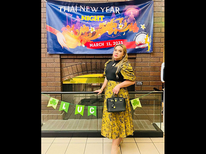 นุชนาฏ อุงอำรุง นายกสมาคมไทยแห่งแคลิฟอร์เนียภาคใต้ รองประธานมูลนิธิพระธรรมจาริกสังฆวิหาร ประธานจัดงานรื่นเริง เถลิงศก ย้อนวิถี สี่นครา ปีที่ 3