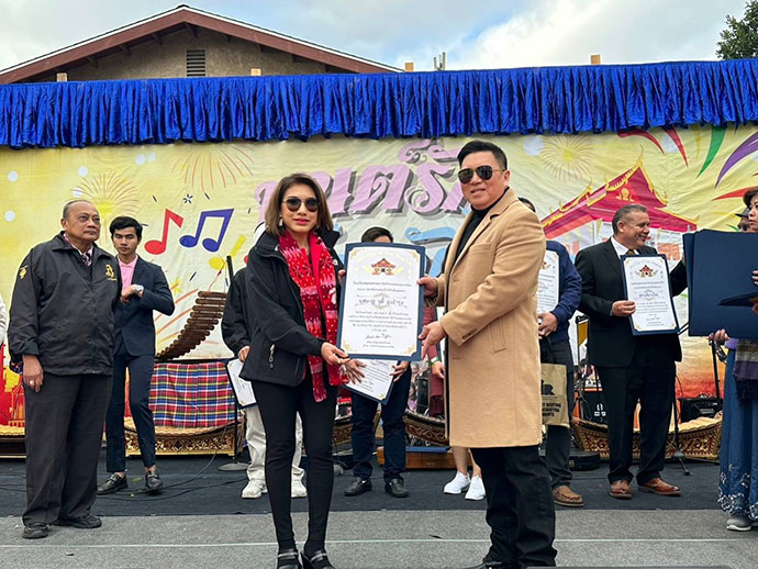 สมชาย ไทยทัน บอร์ดวัดไทยลอสแองเจลิส รอง Miss Songkran USA 2024 อันดับสามรางวัลเงินสด 400 ดอลลาร์สปอนเซอร์โดย