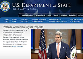 เมื่อวันที่ 25 มิ.ย.2558 นายจอห์น แคร์รี รมว.การต่างประเทศสหรัฐอเมริกา เปิดแถลงรายงานการสำรวจและประเมินผลด้านสิทธิมนุษยชนของนานาประเทศทั่วโลก ประจำปี 2557 ว่า เข้าใจว่ารัฐบาลบางประเทศคงไม่พอใจรายงานฉบับนี้ ไม่เพียงแต่ประเทศที่มีปัญหาร้ายแรงอย่างเกาหลีเหนือ หรือซีเรีย แต่ยังหมายรวมถึงประเทศที่สหรัฐอเมริกาทำงานด้วยอย่างใกล้ชิด