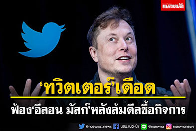 13 ก.ค.65 สำนักข่าวต่างประเทศรายงานว่า ทวิตเตอร์ อิงค์ ยื่นฟ้อง อีลอน มัสก์ ในวันอังคาร (12 ก.ค.) ต่อกรณีละเมิดข้อตกลงมูลค่า 44,000 ล้านดอลลาร์ สำหรับซื้อแฟลตฟอร์มสื่อสังคมออนไลน์แห่งนี้ และขอให้ศาลในรัฐเดลาแวร์ ออกคำสั่งให้อภิมหาเศรษฐีที่รวยที่สุดในโลกรายนี้ดำเนินการควบรวมกิจการให้เสร็จสมบูรณ์ตามราคาที่ตกลงกันไว้ 54.20 ดอลลาร์ต่อหุ้น รอยเตอร์รายงานอ้างเอกสารคำฟ้องที่ยื่นต่อศาล ระบุไม่มีบทลงโทษทางการเงินใดๆที่สามารถชดเชยความเสียหายที่เขาก่อขึ้น