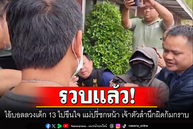 โดยแม่ได้ร้องถามว่า ทำได้ไง ด็กตัวแค่นี้ทำได้ไง มีเหตุผลอะไรต้องพูด ขณะที่นายบอลก็ได้แต่บอกว่า ผมขอโทษครับ จากนั้นนายบอลคงสำนึกไหว้ก้มกราบแม่ของด.ญ.บี บอกว่า ผมขอโทษแ แม่จะทำร้ายหรือจะทำผมอะไรก็ได้ เผื่อแม่จะได้สบายใจขึ้นมา ผมไม่ได้เจตนาทำน้องเขาเลยจริงๆ ขณะที่แม่ด.ญ.บีได้แต่ร้องไห้โกรธที่ถูกไอ้หื่นข่มขืนลูกสาว