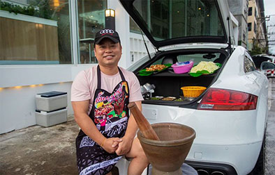 จากที่อดีตผู้จัดการโรงแรมแห่งหนึ่งในตกลงเมืองพัทยา ต้องพลิกชีวิตมาเปิดร้านสถานี ส้มตำวินเทจ โดยใช้รถยนต์ส่วนตัวยี่ห้อ Audi (อาวดี้) ซึ่งเปิดท้ายรถในการทำ ส้มตำ และเครื่องปรุงยำต่างๆ กว่า 10 เมนู พร้อมด้วยอุปกรณ์ครก สาก ที่ใช้สำหรับทำ ส้มตำ และอุปกรณ์ในการทำเมนูยำต่างๆ เพื่อนำไปปรุงสดๆให้กับลูกค้าที่ออเดอร์ถึงที่