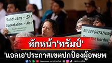 20 พ.ย. 2567 สถานีโทรทัศน์ KTLA5 สื่อท้องถิ่นในเมืองลอส แองเจลิส (แอลเอ) รัฐแคลิฟอร์เนีย สหรัฐอเมริกา รายงานข่าว L.A. to become a ‘sanctuary’ city for migrants in response to Trump threat ระบุว่า ในการประชุมสภาเทศบาลนครแอลเอ เมื่อวันที่ 19 พ.ย. 2567 ที่ประชุมมีมติเอกฉันท์ 13 ต่อ 0 ประกาศในเมืองแห่งนี้เป็นสถานที่ปลอดภัยสำหรับผู้อพยพ ซึ่งเป็นท่าทีแข็งกร้าวต่อ โดนัลด์ ทรัมป์ (Donald Trump) ว่าที่ประธานาธิบดีสหรัฐฯ ที่ประกาศนโยบายพร้อมใช้กำลังทหารขับไล่บุคคลต่างด้าวหลบหนีเข้าเมืองอย่างผิดกฎหมายออกจากแผ่นดินสหรัฐฯ
