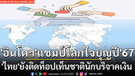 20 พ.ย. 2567 CharitiesAid Foundation (CAF) องค์กรการกุศลไม่แสวงหากำไรซึ่งมีสำนักงานใหญ่อยู่ในประเทศอังกฤษ เผยแพร่รายงาน “ดัชนีความใจบุญโลก ประจำปี 2567 (World Giving Index 2024)” โดยองค์กรดังกล่าวได้จัดทำรายงานนี้เผยแพร่อย่างต่อเนื่องมาตั้งแต่ปี 2554 (World Giving Index 2011X แบ่งการให้คะแนนเป็น 3 ด้าน คือ การบริจาคเงิน(Donating Money) การช่วยเหลือคนแปลกหน้า (Helping Stranger) และการใช้เวลาเป็นจิตอาสา (Volunteering Time) สำหรับรายงานของปีนี้ซึ่งมี 142 ประเทศเข้าร่วม พบว่า..