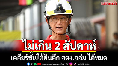ส่วนการดำเนินการรื้อซากอาคารชั้นใต้ดินให้แล้วเสร็จทั้งหมดยังเป็นไปตามแผน คือ ประมาณ 2 สัปดาห์ หากไม่มีปัญหาอุปสรรคที่เป็นปัจจัยแทรกซ้อน อาทิ พบเสาปูนหรือเหล็กขนาดใหญ่ หรือเครื่องจักรหนักสำคัญชำรุดที่ต้องใช้เวลาในการซ่อมแซม คาดว่าจะสามารถดำเนินการได้เร็วกว่าแผนที่กำหนด