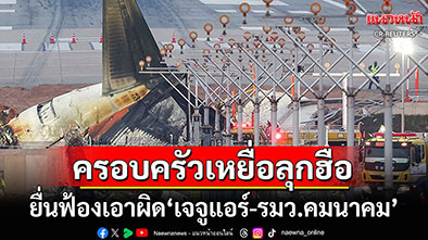 ความคืบหน้าล่าสุดรอบครัวของผู้เสียชีวิตได้รวมตัวกันยื่นฟ้องอาญาต่อบุคคล 15 ราย รวมถึงรัฐมนตรีกระทรวงคมนาคมเกาหลีใต้ และซีอีโอของสายการบินเจจูแอร์ ในข้อหาละเลยการปฏิบัติหน้าที่จนเป็นเหตุให้มีผู้เสียชีวิต โดยญาติของผู้เสียชีวิต 72 ราย เรียกร้องให้มีการสอบสวนอย่างละเอียดถี่ถ้วนมากขึ้นเกี่ยวกับเหตุการณ์โศกนาฏกรรมเครื่องบินครั้งนี้ โดยพวกเขาอ้างว่า เหตุการณ์ครั้งนี้ "ไม่ใช่เป็นอุบัติเหตุธรรมดา" แต่เป็น "ภัยพิบัติทางแพ่งครั้งใหญ่ที่เกิดจากความบกพร่องในการจัดการความเสี่ยงที่ควรจะป้องกันได้"