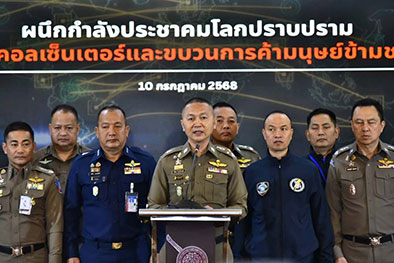 วันที่ 10 ก.ค. พล.ต.อ.กิตติ์รัฐ พันธุ์เพ็ชร์ ผบ.ตร.มอบหมายให้ พล.ต.อ.ธัชชัย ปิตะนีละบุตร จเรตำรวจแห่งชาติ ในฐานะ ผอ.ศปอส.ตร./ผอ.ศตคม.ตร.หัวหน้าหน่วยเฉพาะกิจ UNODC ต่อต้านอาชญากรรมคอลเซ็นเตอร์และการค้ามนุษย์ ชี้แจงถึงสถานการณ์ปัญหาอาชญากรรมแก๊งคอลเซ็นเตอร์และค้ามนุษย์ ในปัจจุบัน โดยปัจจุบันสถานการณ์การหลอกลวงคนไทยของแก๊งคอลเซ็นเตอร์ที่ผ่านมา ยังมีที่ตั้งอยู่ในประเทศเพื่อนบ้าน ได้แก่ กัมพูชา เมียนมา และลาว เพื่อจะหลอกคนไทยและชาติต่างๆ ทั่วโลก และเนื่องจากประเทศไทยเป็นจุดยุทธศาสตร์ทางการบินที่สำคัญในเอเชียตะวันออกเฉียงใต้ มีเที่ยวบินจากทั่วโลก เข้ามาในประเทศ ประกอบกับการคมนาคมที่สะดวก กลุ่มคนร้ายจึงอาศัยช่องว่างดังกล่าวเข้ามาในไทยในฐานะนักท่องเที่ยว เพื่อเดินทางไปยังบริเวณแนวชายแดน แล้วลักลอบข้ามไปยังแก๊งคอลเซ็นเตอร์ที่ตั้งอยู่ในประเทศเพื่อนบ้าน หรือใช้ช่องทางดังกล่าวหลอกคนข้ามไปทำงานแก๊งคอลเซ็นเตอร์