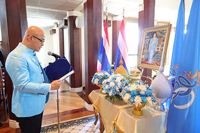 โดยมีนายต่อ ศรลัมพ์ กงสุลใหญ่ ณ นครลอสแอนเจลิส และภริยา เป็นประธานในพิธีฯ นำผู้เข้าร่วมพิธีฯ ถวายความเคารพ เบื้องหน้าพระฉายาลักษณ์สมเด็จพระนางเจ้าสิริกิติ์ พระบรมราชินีนาถ พระบรมราชชนนีพันปีหลวง เปิดกรวยกระทงดอกไม้ธูปเทียนแพ วางพานพุ่มดอกไม้ถวายราชสักการะ และกล่าวคำกราบบังคมทูลถวายพระพรชัยมงคลเบื้องหน้าพระฉายาลักษณ์ฯ ต่อมา กงสุลใหญ่ฯ หัวหน้าสำนักงานทีมประเทศไทย ข้าราชการและคู่สมรส ได้ถวายจตุปัจจัยไทยธรรมแด่พระสงฆ์ จำนวน ๑๐ รูป