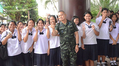 วันที่ 4 กันยายน 2568 เวลา 13.00 น. ที่โรงเรียนสุรนารีวิทยา อ.เมือง จ.นครราชสีมา พลโทบุญสิน พาดกลาง แม่ทัพภาคที่ 2 พร้อมคณะนายทหารกองทัพภาคที่ 2 ได้ไปปฏิบัติภารกิจในการบรรยายและปาฐกถาพิเศษให้การครู อาจารย์ นักเรียนโรงเรียนสุรนารีวิทยา ซึ่งวเป็นโรงเรียนสตรีล้วนชื่อดังประจำจังหวัดนครราชสีมา ในหัวข้อ “ การปลูกฝังความรัก และเชิดชูสถาบันชาติ ศาสนา พระมหากษัตริย์ “ โดยมีนายธนวัฒน์ สุขเกษม ผู้อำนวยการฯพร้อมด้วยคณะครู อาจารย์ นักเรียนรอให้การต้อนรับ โดยทันทีที่เดินมาถึงมีบรรดานักเรียนหญิงระดับชั้นมัธยมศึกษา ม.ต้น และ ม.ปลาย ตั้งแถวรอรับพร้อมกับส่งเสียงกรี๊ดกันสนั่น และแต่ละคนต่างใช้โทรศัพท์มือถือถ่ายบันทึกภาพ ซึ่งแม่ทัพภาคที่ 2 ได้เดินพบปะน้องๆนักเรียนที่รุมขอถ่ายเซลฟี่ ขอลายเซ็นจนแน่นขนัด รวมทั้งครู อาจารย์ บุคาลกร ผู้ปกครองนักเรียนก็รุมขอถ่ายเซลฟี่ ถ่ายบันทึกภาพตั้งแต่ชั้นล่างจนขึ้นไปถึงห้องประชุมชั้น 2 โดยมีเหล่านักเรียน รด.หญิง ถือธงชาติ ตั้งแถวรอต้อนรับอย่างอุ่นหนาฝาคั่งอบอุ่น โดยแม่ทัพภาคที่ 2 มีแต่รอยยิ้มแฉ่งจนหน้าบานตลอดเวลา พร้อมทั้งเดินทางทาย เซลฟรี่ แปะมือน้องๆนักเรียนหญิงที่รอต้อนรับกว่า 1,500 คน โดยมีการแสดงดนตรีวงโยธวาทิต และการขับร้องเพลงปลุกใจ โดยขณะที่มีการเปิดภาพประวัติของแม่ทัพภาคที่ 2 ภายในห้องประชุมมีการปิดไฟสลัวๆ นักเรียนทั้งหมดที่อยู่ภายในห้องประชุมทุกคนต่างหยิบโทรศัพท์มือถือเปิดไฟฉายแล้วชูขึ้นโบกให้แสงสว่างไปมา พร้อมกับเสียงตบมือและกรี๊ดกันดังไปทั่วห้องประชุม
