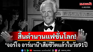 4 กันยายน 2568 สำนักข่าวต่างประเทศรายงานว่า 'จอร์โจ อาร์มานี' (Giorgio Armani) นักออกแบบแฟชั่นชื่อดังชาวอิตาลี และผู้ก่อตั้งแบรนด์แฟชั่นระดับโลก 'อาร์มานี' (Armani) เสียชีวิตแล้วในวัย 91 ปี