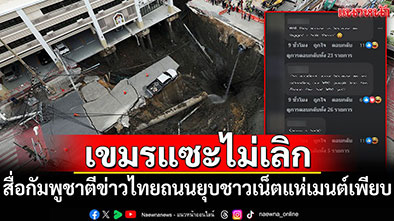 นอกจากนี้ Khmer Times ยังได้เผยแพร่ข่าวผ่านทางเพจเฟซบุ๊กของสำนักข่าว ทำให้เกิดกระแสวิพากษ์วิจารณ์ในโลกออนไลน์ โดยชาวเน็ตกัมพูชาจำนวนมากร่วมแสดงความคิดเห็นในลักษณะหลากหลาย เช่น “เป็นเวรกรรม” ,“เป็นการลงโทษจากพระเจ้า” ,“เขมรวางทุ่นระเบิดอีกแล้วเหรอ?” ,“เขาจะกล่าวหาเราเพราะเราขุดหลุมตรงนั้นเหรอ?”