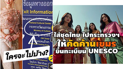 โซเชียลเดือด! นัดรวมพลังชาวไทยแต่งชุดไทยยื่นหนังสือร้องกระทรวงวัฒนธรรมบ่ายโมง 12 มี.ค.69 จี้ค้านกัมพูชาเคลม "ชุดไทย-สงกรานต์" ขึ้นทะเบียนยูเนสโก ลั่นมรดกชาติจะถูกชุบมือเปิบไม่ได้