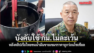ทร. รับทราบกรณีข่าวการลักลอบนำน้ำมันเชื้อเพลิงไปจำหน่ายนอกประเทศ เร่งตรวจสอบข้อเท็จจริง พร้อมขอบคุณประชาชนร่วมแจ้งเบาะแส ขณะนี้อยู่ระหว่างดำเนินการสอบสวน ยันบังคับใช้กฎหมายไม่ละเว้น