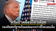 9 เมษายน 2569 สำนักข่าวต่างประเทศรายงานว่า ประธานาธิบดีโดนัลด์ ทรัมป์ ของสหรัฐ ได้ออกมาโพสต์ข้อความผ่านทางทรูธ โซเชียล "@RealDonaldTrump" โดยระบุข้อความว่า ... เรือ เครื่องบิน และกำลังพลทางทหารของสหรัฐฯ ทั้งหมด พร้อมด้วยกระสุน อาวุธยุทโธปกรณ์จำนวนมาก และสิ่งอื่นใดที่เหมาะสมและจำเป็นสำหรับการดำเนินการโจมตีและทำลายล้างศัตรูที่ถูกทำให้อ่อนแอลงไปมากแล้ว จะยังคงประจำการอยู่ในและรอบๆ อิหร่าน จนกว่าข้อตกลงที่แท้จริงจะได้รับการปฏิบัติตามอย่างครบถ้วน
