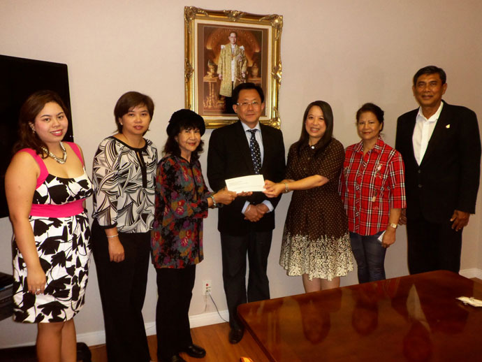 กงสุลใหญ่เจษฎา กตเวทิน ในเกียรติเป็นสักขีพยาน ทางชมรมขอขอบคุณพันธมิตร มูลนิธิธารน้ำใจสหรัฐอเมริกา ศูนย์วัฒนธรรมไทยนครลอสแอนเจลิส ผู้เข้าร่วมงาน และเจ้าหน้าที่อาสาสมัครที่ปฏิบัติงานทางด้านต่าง ๆ อย่างไม่เหน็ดเหนื่อย ทั้งนี้เงินจำนวนดังกล่าวจะถูกใช้โดยศูนย์ส่งเสริมชาวไทย เพื่อช่วยเหลือบุคคลที่ตกทุกข์ได้ยากต่อไป......* "แป๊ว"