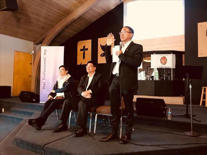 กงสุลใหญ่ ธานี แสงรัตน์ เลี้ยงขอบคุณสื่อมวลชนไทย ที่ให้ความร่วมมือต่อสถานกงสุลฯ ด้วยดีมาโดยตลอด เมื่อวันจันทร์ที่ 21 พฤษภาคม 2561 หลังกล่าวขอบคุณสื่อแล้ว บัญญัติ นพคุณ ผอ.แน็ท ทีวี. เป็นตัวแทนของสื่อมวลชนได้กล่าวตอบขอบคุณ กงสุลใหญ่ฯ และในฐานะที่เป็นคนทำทีวี เลยอยากจะทบทวนความเป็นมาให้ทราบ เริ่มตั้งแต่ปี 1997 ที่ พล.อ แป้ง มาลากุล ได้มาเปิด ทีวีโกบอลเน็ตเวิร์ค กงสุลใหญ่ฯ ฟังอยู่ครู่ใหญ่คิดว่ากว่าจะถึงปี 2018 คงอีกนาน จึงขอตัวไปเปลี่ยนเสื้อผ้าเพื่อจะเข้าพิธีงานรับเครื่องราชฯ อ.กังวาล ภายหลังกงสุลใหญ่ฯกลับมา ปรากฏว่า ผอ.แน็ททีวี ยังเล่าไม่ถึง 2018 จึงเชิญไปทานอาหารกลางวันกันก่อน แล้วค่อยกลับมาฟังต่อ……..* สถานกงสุลใหญ่ ลอสแอนเจลิส และ สมาคมพยาบาลไทยแห่งแคลิฟอร์เนีย ร่วมกับ คณะแพทย์ DEPARTMENT OF EMERGENCY MEDICINE UC IRVINE HEALTH กำหนดจัดอบรมการกู้ชีพเบื้องต้น (CPR)ในวันศุกร์ที่ 25 พฤษภาคม 2561 ตั้งแต่ เวลา 10.00-13.00 น. ณ โบสถ์คริสจักรไทยเอ้ารีช Thai Outreach Hollywood Church เลขที่ 1800 N.Western Ave Los Angeles, CA 90027 บรรยายให้ความรู้โดย แพทย์หญิงวิราชิน ฮุนพงษ์สิมานนท์ MD, MS, FACEP แพทย์หญิงขวัญศิริ นราจีนรณ MD, MS, FTCEP, CHSE และ แพทย์หญิงธันยพร นครชัย MD, SIRIRAJ HOSPITAL ขอเชิญผู้ที่สนใจเข้าร่วมได้ในวันและเวลาดังกล่าว สำรองที่นั่งได้ที่ ณัฐพงศ์ฯ โทร 323-962-9574 ต่อ 216 อีเมล์ nattapong.c@thaiconsulatela.org ไม่มีค่าใช้จ่ายในการเข้าร่วมการอบรม……..* สมาคมอีสานแห่งแคลิฟอร์เนียภาคใต้ เตรียมจัดงาน “อีสานบอลล์ 2018” ที่จะมีขึ้นที่ อคาเดีย คอมมูนิตี้ เซ็นเตอร์ ในวันเสาร์ที่ 9 มิถุนายน... โดยนอกจากจะมีอาหารอร่อย ลีลาส เต้นรำ และกิจกรรมต่างๆ ให้ร่วมสนุกมากมาย ยังมีนักร้องลูกทุ่งสุดดังจากเมืองไทย “ดาว มยุรี” เจ้าของเพลงดังมากมาย มาร่วมสร้างความ “ม่วนซื่น” ในงานด้วย... บัตรราคา 35 ดอลลาร์ ซื้อบัตรได้ที่ จันทรา แก้วดี 818-428-5676, วราภรณ์ เตียประสิทธิ์ 818-255-8355, พูนสิน สุทธิสาร 323-662-7401……..* โรงเรียนพุทธศาสนาวัดไทยแอลเอ ขอเชิญร่วมชมงานมหกรรมดนตรีและนาฏศิลป์ไทย ครั้งที่ 20 ในธีม “มนต์รักวัดไทย” กำหนดจัดในวันเสาร์ที่ 16 มิถุนายน 2561 ที่เวทีวัดไทยลอส แองเจลิส บัตรเข้าชมงานพร้อมอาหารราคาใบละ $20 ประตูเปิดเวลา 16.30 น.ชมการแสดงห้าโมงเย็นถึงหนี่งทุ่ม ซื้อบัตรได้ที่ ครูเปิ้ล วาสินี ธรรมปัญญา 818-571-1771 ครูอาสาทุกท่าน และที่หน้างาน……..* วัดไทย ลอสแอนเจลิส ขอเชิญร่วมชม “มนต์รักวัดไทย” การแสดงดนตรี-นาฏศิลป์ไทย ของนักเรียน จากโรงเรียนพุทธศาสนาวัดไทยฯ ในวันเสาร์ที่ 16 มิถุนายน 2018 ที่วัดไทยฯ 8225 Coldwater Canyon Ave. N.Hollywood, CA 91605 ประตูเปิด 4.30pm. โชว์เริ่ม 5pm.-7pm. บัตรราคา $20 (บัตรรัฟเฟิลราคา $2) ซื้อบัตรได้ที่ Pla 818-571-1771, Mali 818-505-4122, Jeng 818-747-9628, Ing 747-248-9428……..* สนุ