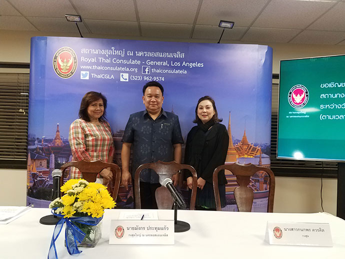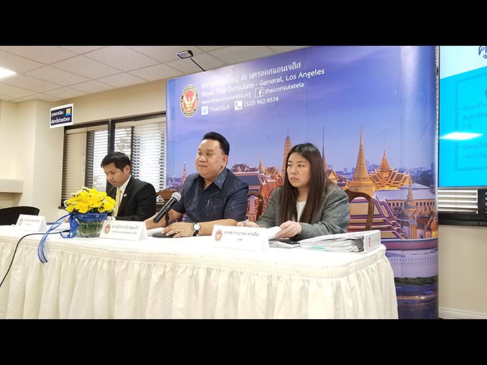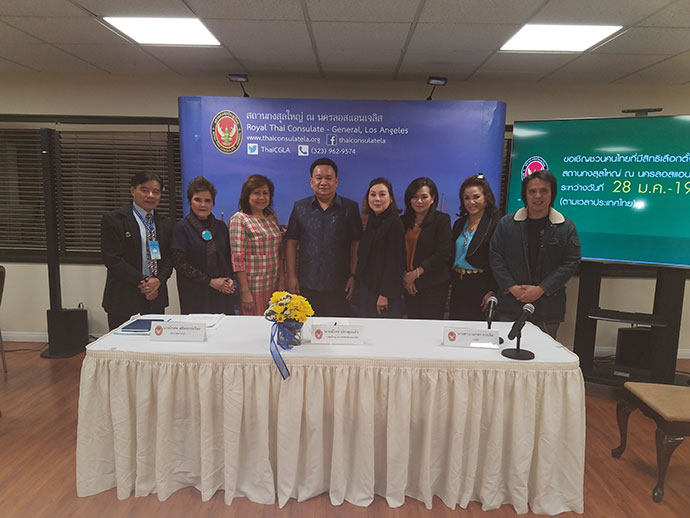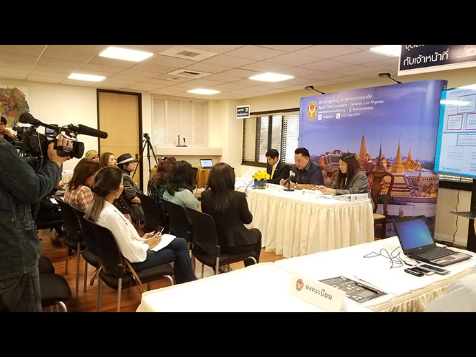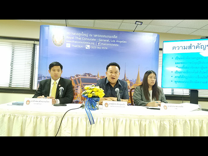 กงสุลใหญ่มังกร ประทุมแก้ว แถลงข่าวเรื่องการเลือกตั้งนอกราชอาณาจักร พร้อมทั้งให้สื่อมวลชนไทยได้ลงทะเบียนขอใช้สิทธิเลือกตั้ง ฯ ทางออนไลน์ ที่เว็บไซต์ www.khonthai.com เมื่อวันจันทร์ที่ 28 มกราคม 2562 ณ ศูนย์เลือกตั้งนอกราชอาณาจักร ประจำสถานกงสุลใหญ่ ลอสแอนเจลิส