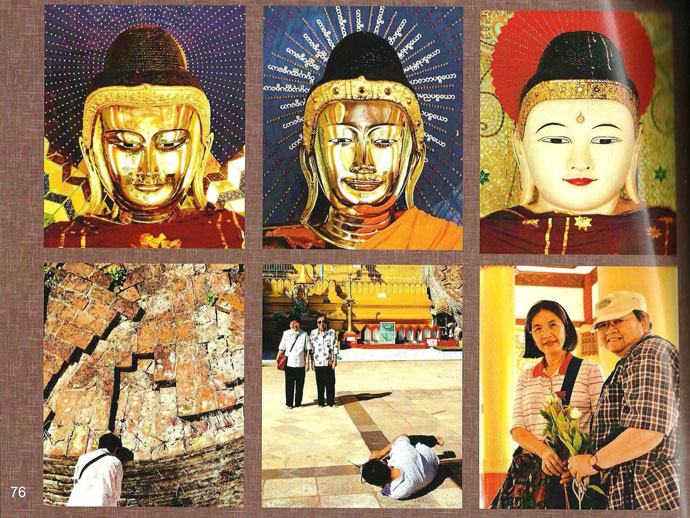 5 โมงเย็น ล่องเรือไปขึ้นรถแล้วก็ขึ้นเรือบิน บินไปสนามบินนานาชาติมัณฑะเลย์ ขึ้นรถโค้ชปรับอากาศผ่านเมืองอมรปุระ ไปถึงมัณฑะเลย์ รับประทานอาหารเสร็จเข้าที่พัก เป็นรายการที่ครบทุกรสชาติ ที่น่าประทับใจคือไปทางไหนก็มีวัดมีพระ ยิ่งที่วัดบัวเข็มมีการปิดทองพระพุทธรูปหลายร้อยปีต่อเนื่องทับถมกันไปบนองค์พระ เป็นพระพุทธรูปจากองค์เล็กๆ กลมเป็นก้อน พวกฝรั่งเรียกว่า “ลูกบอลทองคำ” ข้างในจะปั้นวิจิตรอย่างไรไม่สนใจ เห็นแต่ทองหุ้มขนาดใหญ่เหลืองอร่าม มีส่วนโค้งเว้า นี่แหละฝีมือปั้นแท้ สวยงามตรงประกาศความศรัทธาของมนุษย์พุทธศาสนิกชน