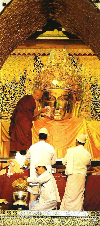 วัดมหามัยมุนี วัดนี้ไม่เล่าไม่ได้ ถึงเล่าแล้วก็ต้องเล่าอีก เป็นจุดประทับใจของผู้เขียนโดยเฉพาะ วัดชื่อมหามงคล มหามุนี แปลว่ามหาปราชญ์ พระเจ้าปดุงโปรดให้สร้างเมื่อ พ.ศ. 2327 เพื่อประดิษฐานพระพุทธรูปจากยะไข่ ปางมารวิชัย หน้าตัก 3 เมตร ทรงเครื่องทองแบบกษัตริย์ เดิมอยู่บนยอดเขาสิริคุต พอพระเจ้าปดุงยึดยะไข่ได้ จึงเคลื่อนย้ายมาประดิษฐาน ณ กรุงอมรปุระ สมัยพระเจ้าสีปอ พ.ศ. 2427 เกิดไฟไหม้ครั้งใหญ่ ทำให้ทองคำที่ปิดอยู่ละลายไหลลงมา เก็บเนื้อทองได้ 700 บาท