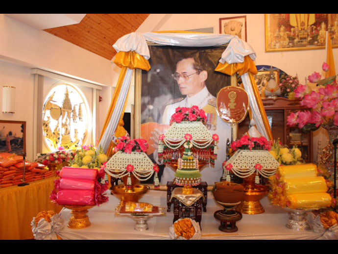 สาธุชนพร้อมกันไหว้พระสวดมนต์ สมาทานศีล พิธีอัญเชิญผ้าพระกฐิน ตั้งขบวนแห่ผ้าพระกฐินพระราชทาน พระเดชพระคุณพระวิเทศธรรมรังษีแสดงพระธรรมเทศนาว่าด้วยความสำคัญและอานิสงฆ์ของกฐิน ท่านแสดงสัมโมทนียกถาย้ำหลายครั้งถึงบารมีของเจ้าภาพคือนายแพทย์สุวัฒน์ และแพทย์หญิงดวงเดือน ศิลปสุวรรณ ผู้เป็นที่รักที่ยกย่องของคนทั้งหลาย จึงได้พร้อมใจกันมาร่วมเพิ่มบุญเพิ่มบารมีกันเนืองแน่น เพราะเจ้าภาพประกอบคุณงามความดีไว้มากเป็นที่ประจักษ์ทั่วไป จนได้รับพระมหากรุณาธิคุณพระราชทานผ้าพระกฐิน จากนั้นเจ้าภาพเป็นประธานนำถวายผ้าพระกฐินพระราชทานพร้อมด้วยประธานกิตติมศักดิ์ หม่อมเจ้า(หญิง)วุฒิเฉลิม วุฒิชัย ท่านเอกอัครราชทูตไทยและภริยาและคณะกรรมการถวายผ้าพระกฐินพระราชทาน