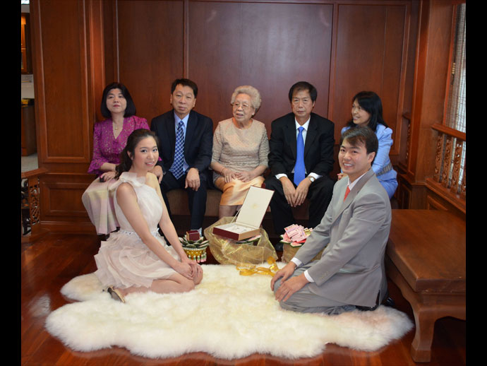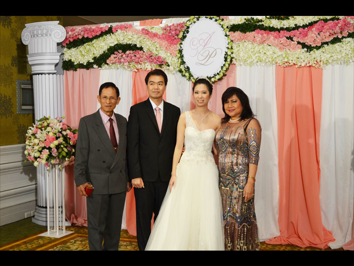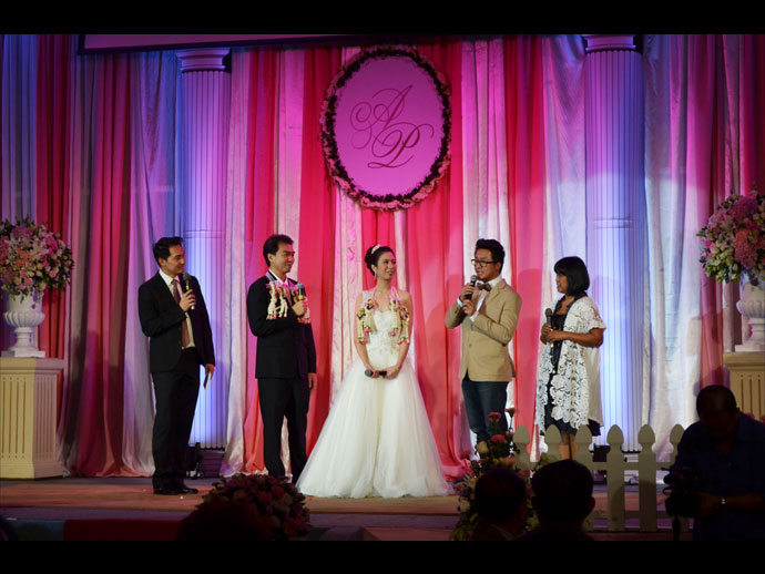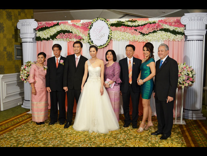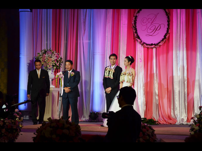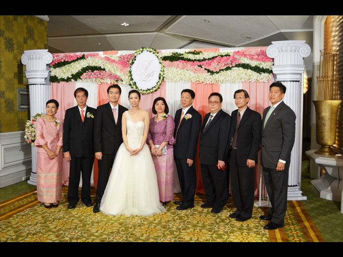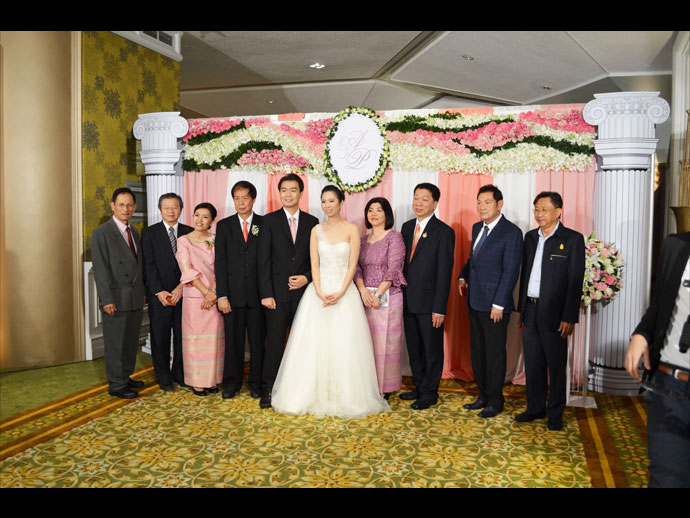 ระหว่าง เอมรินทร์ พลอยแสงงาม บุตรี เอนก-มนฑกาญ พลอยแสงงาม กับ ปรเมษฐ์ เกียรติสมภพ บุตร ปราโมทย์-ประทุมพร เกียรติสมภพ ห้องนภาลัยบอลรูม โรงแรมดุสิตธานี กรุงเทพฯ 12-12-12