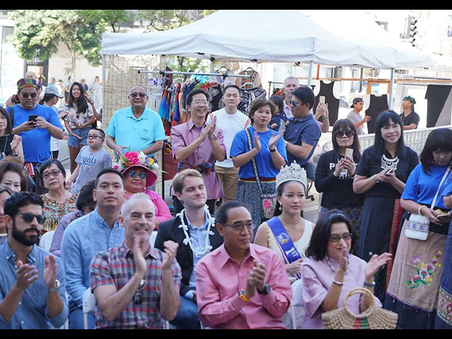 โดยมี ตัน พัฒนะ นายกสภาไทยทาวน์ฯ ได้มอบมาลัย แสดงความขอบคุณกับทุกท่าน (ขอขอบคุณมาลัยสวยๆ จากคุณทราย มาลัย) หลังจากนั้นได้มีการแสดงชุดรากไทย จากคณะลานนานาฏศิลป์ฯ ดนตรีไทยบรรเลง การประกวดแข่งขันตำส้มตำลีลา ซึ่งมีผู้เข้าร่วมการแข่งขัน 5 ทีม ได้แก่ ทีมที่ 1 ร้านเลิฟทูอีท ทีมที่ 2 วัดพระธาตุดอยสุเทพ ยูเอสเอ ทีมที่ 3 ร้านโนรีไทยออนเบเวอรี่ ทีมที่ 4 คุณวิริยา พวงพาราม ทีมที่ 5 คุณทองสุข หอมทรัพย์