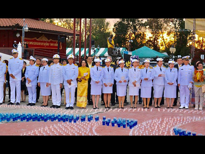กงสุลใหญ่ฯ หัวหน้าสำนักงานทีมประเทศไทย ข้าราชการ เข้าร่วมจุดเทียนเพื่อน้อมรำลึกในพระมหากรุณาธิคุณเนื่องในวันคล้ายวันสวรรคตพระบาทสมเด็จพระปรมิทรมหาภูมิพล อดุลยเดช บรมนาถบพิตร พร้อมกับพสกนิกรชาวไทยในนครลอสแอนเจลิส กว่า ๓๐๐ คน ที่มาร่วมจุดเทียนและร้องเพลงเพื่อน้อมรำลึก โดยมีเพลงความฝันอันสูงสุด พระราชาผู้ทรงธรรม และเพลงรักพ่อไม่มีวันพอเพียง มาร่วมจุดเทียนและร้องเพลงเพื่อน้อมรำลึก โดยมีเพลงความฝันอันสูงสุด พระราชาผู้ทรงธรรม และเพลงรักพ่อไม่มีวันพอเพียง