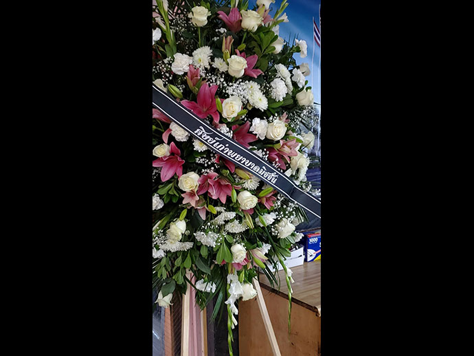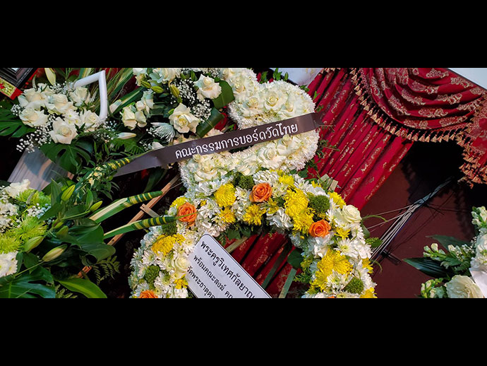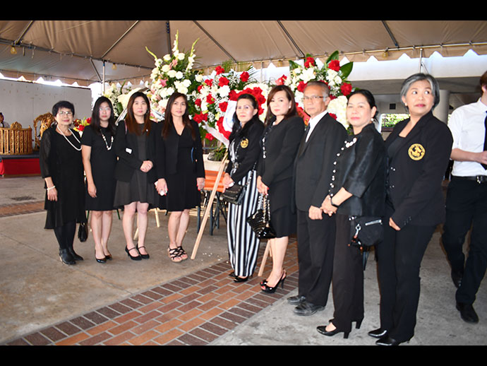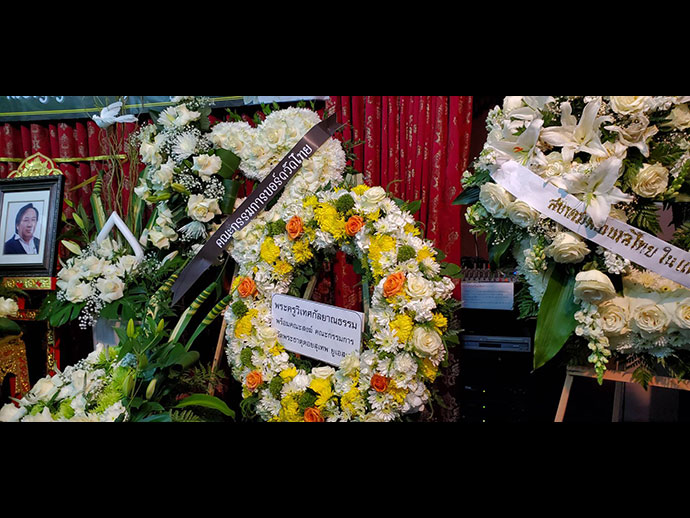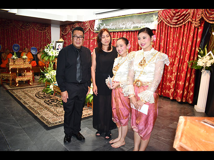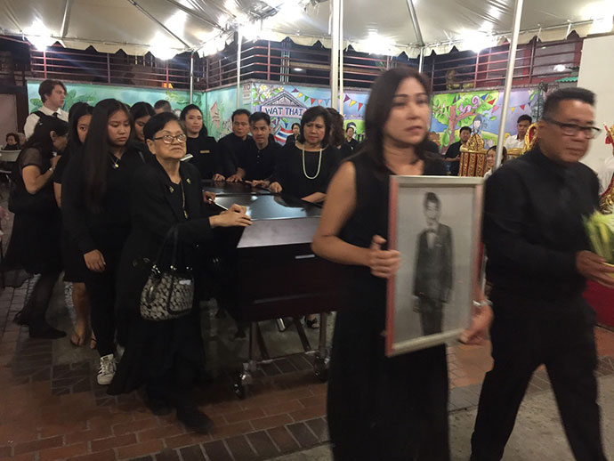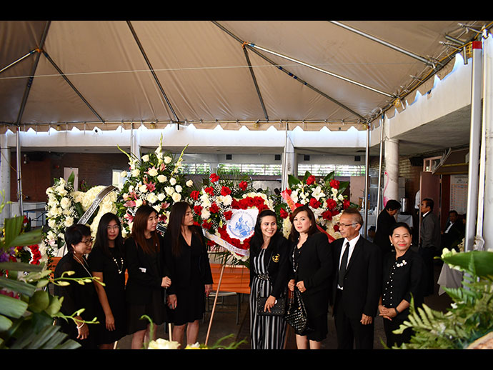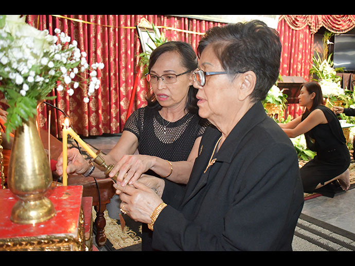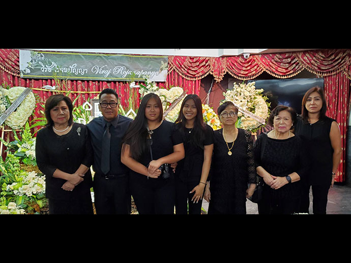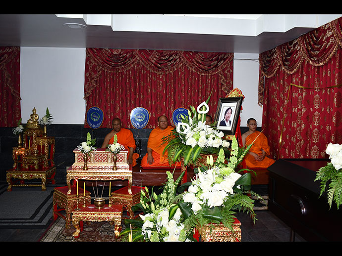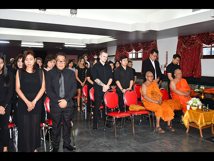 มีพิธีสวดพระอภิธรรม วันเสาร์ที่ 29 มิถุนายน 2562 เวลา 19.30 น. โดยมี คุณจรโคว้ เป็นเจ้าภาพสวดพระอภิธรรม และพิธีฌาปนกิจ ในวันอาทิตย์ที่ 30 มิถุนายน เวลา13.00 น. ณ สุสานฮอลลีวูด ฟอร์เอฟเวอร์