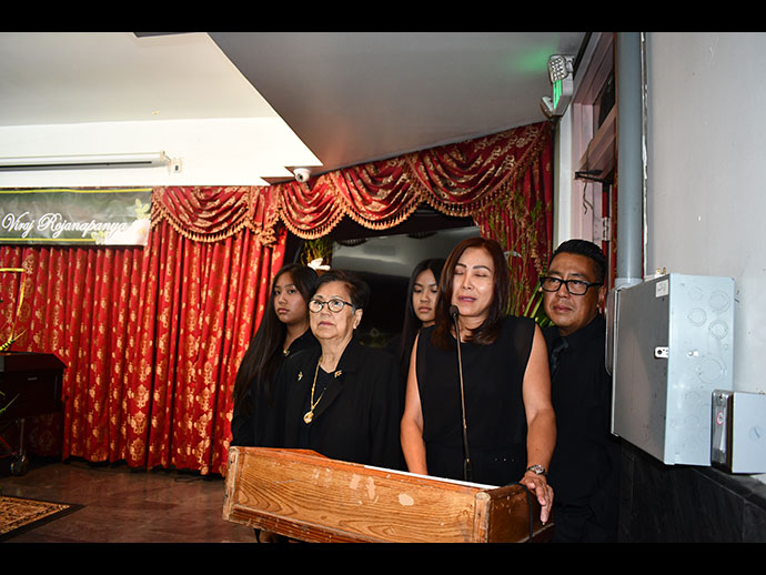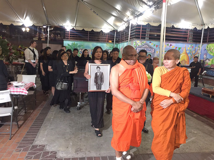 เมื่อคืนวันพฤหัสที่ 27 มิถุนายน 2562 เวลา 7.30 pm. ณ วัดไทยลอสแองเจลิส นำโดย โอฬาร บุญรักษ์ (ประชาสัมพันธ์วัดไทยแอลเอ.)และคณะกรรมการบอร์ดวัดไทย เป็นเจ้าภาพสวดพระอภิธรรม