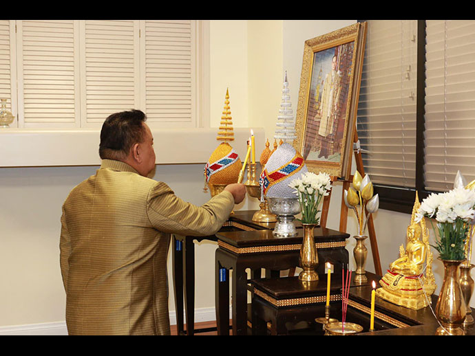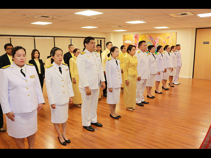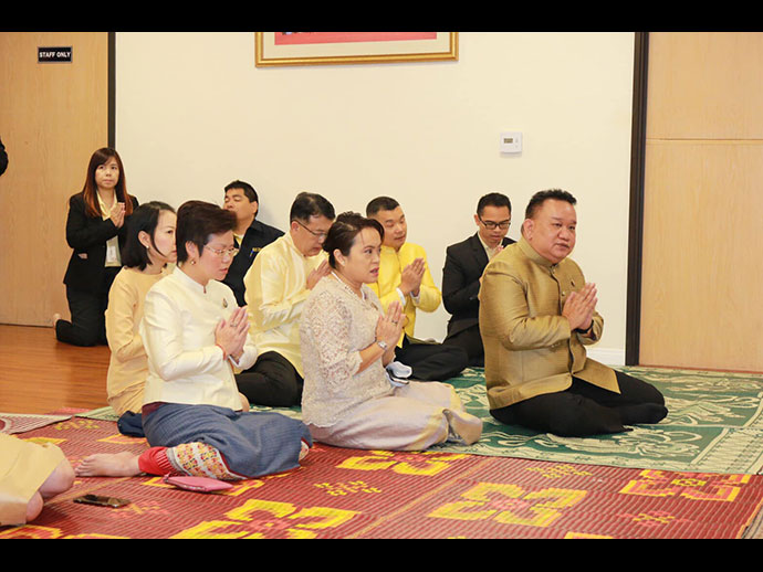 ณ ที่ทำการสถานกงสุลใหญ่ ณ นครลอสแอนเจลิส โดยมีนายมังกร ประทุมแก้ว กงสุลใหญ่ ณ นครลอสแอนเจลิส พร้อมด้วยนางกมลภัทร ประทุมแก้ว ภริยา หัวหน้าสำนักงานทีมประเทศไทย ข้าราชการ คู่สมรส เจ้าหน้าที่ และผู้แทนสมาคม ชมรม เข้าร่วมพิธีฯ โดยมีรายละเอียด ดังนี้