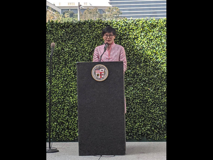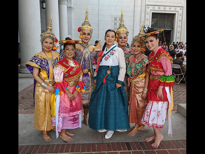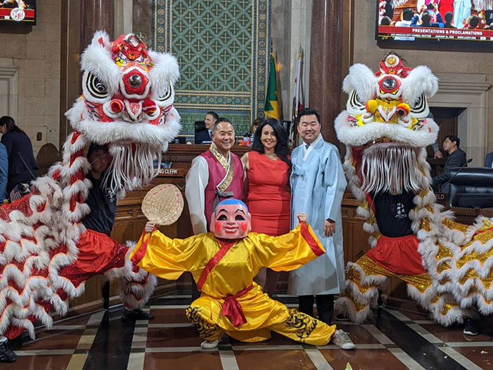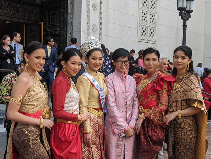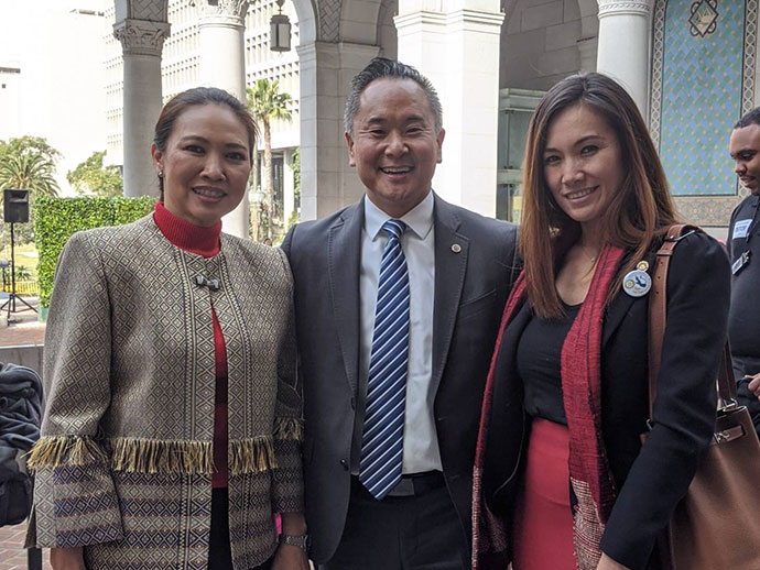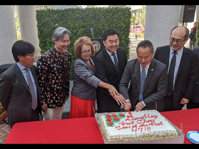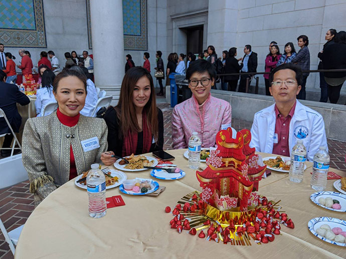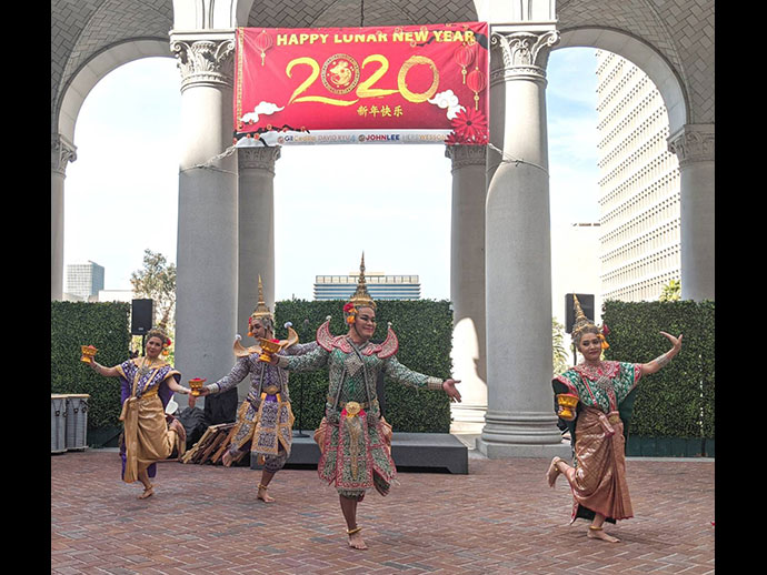 กงสุล อารียา ประจันพาณิชย์ ผู้แทนจากสถานกงสุลใหญ่ ณ นครลอสแอนเจลิส ตัวแทนชุมชนไทย และสื่อมวลชนไทยในนครลอสแอนเจลิส เข้าร่วมงาน Lunar New Year Celebration เฉลิมฉลองเทศกาลขึ้นปีใหม่ของชาวจีนที่จัดขึ้นที่ Los Angeles City Hall ในวันที่ 24 มกราคม พ.ศ. 2563