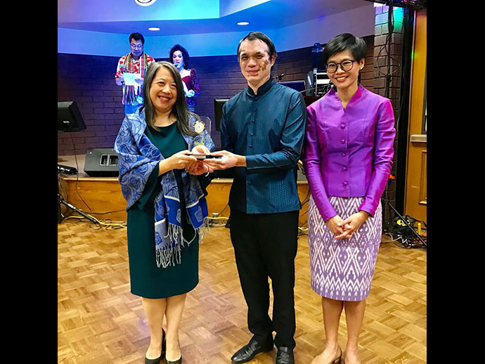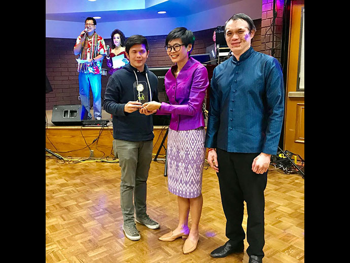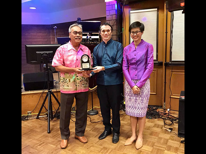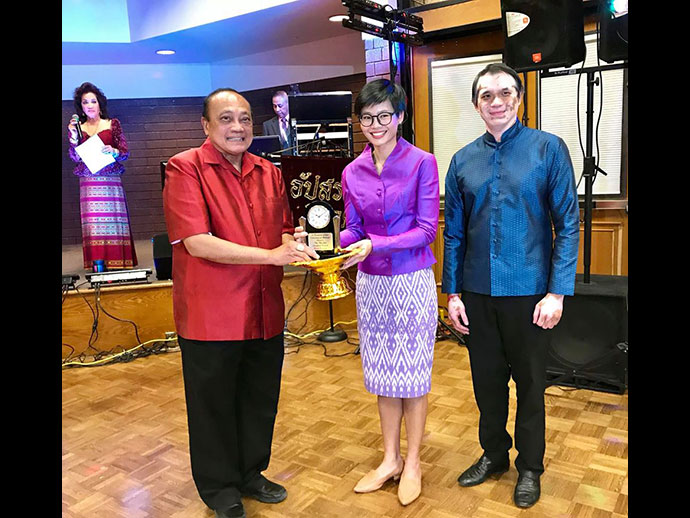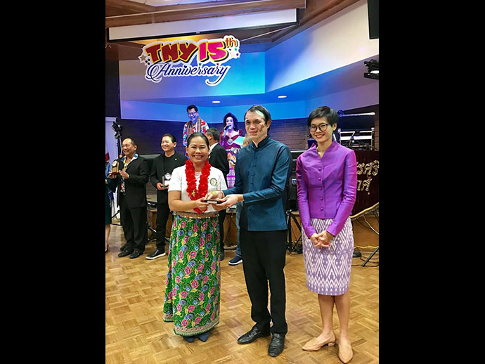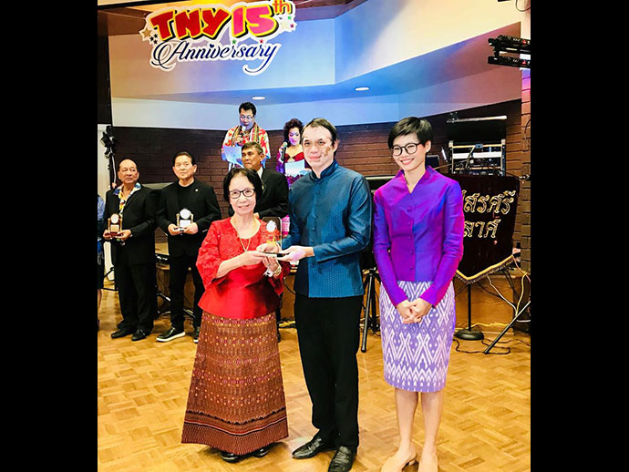 ในงานมีพิธีมอบโล่ประกาศเกียรติคุณให้กับบุคคล 17 ท่านที่มีคุณูปการช่วยเหลือการจัดงานไทยนิวเยียร์ฯ ในด้านต่าง ๆ ประกอบด้วย 1.ท่านทูตอิสินธร สอนไว 2. ท่านทูตธานี แสงรัตน์ 3.ดำฤทธิ์ วิริยะกุล 4.นภดล วงศ์ชัยวัฒน์ 5. สมชาย ไทยทัน 6.สาคร ศิริรัฐ 7.พลเทพ อินทุรัตน์ 8.วนิดา ศรีวะรมย์ 9.สุดเศวต เศวตะโศภน 10.นงเยาว์ วรานนท์ 11.ชัญชนิฐ มาร์เทอเรลล์ 12.พูนศิริ ลิมพะสุต 13.สุรชาติ กาญจนวิจิตร 14.วรนุช บุญประกอบ 15.ชาลี ชัยจารี 16.ภาณุพล รักแต่งาม 17.สนธยา ปรานศิลป์