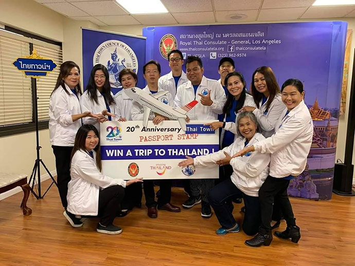 • “Thai Town Passport” เพื่อฉลองครบรอบ 20 ปีไทยทาวน์ฯ โดยโครงการนี้มีวัตถุประสงค์เพื่อกระตุ้นธุรกิจของคนไทย ให้มีลูกค้ามาใช้บริการมากขึ้นและต่อเนื่อง โดยลูกค้าที่มาใช้บริการในร้านค้าที่ร่วมโครงการทั้งหมด 45 ร้านค้าในบริเวณไทยทาวน์ จะได้รับการสะสมแสตมป์เพื่อแลกรับของรางวัล โดยมีรางวัลใหญ่คือตั๋วเครื่องบินไปกลับแอลเอ-กรุงเทพจำนวน 7 รางวัล โครงการดังกล่าวเริ่มตั้งแต่ 15 ตุลาคม ถึง 30 พฤศจิกายน 2562