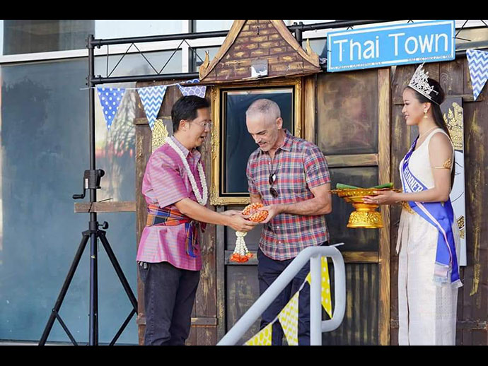 • งาน Thai New Year Songkran Festival 2018 & 2019 จัดขึ้นวันที่ 22 เมษายน 2561 และ 28 เมษายน 2562 ณ บริเวณไทยทาวน์ ซึ่งทางทีมสภาไทยทาวน์ดูแลรับผิดชอบหลักในเรื่องของขบวนพาเหรดที่มีผู้เข้าร่วมขบวนจากสมาคมชมรมต่างๆกว่า 500 คน มีขบวนโขน ขบวนรำกลองยาว ขบวนรถเปิดประทุนของวีไอพี ตลอดจนดูแลเรื่องสวัสดิการอาหาร และผลิต-จำหน่ายลูกโป่งที่ใช้ในการประกวดนางงาม